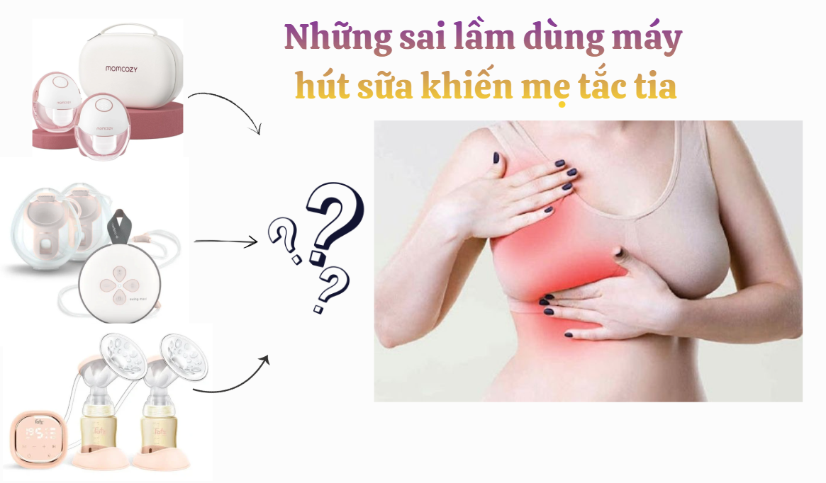 Những sai lầm khi dùng máy hút sữa khiến mẹ tắc tia thường xuất phát từ việc hút sữa không đều, hút chưa hết sữa hoặc thao tác sai cách.